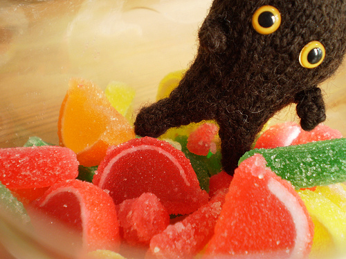 I have been known to use the poor man’s stitch markers (loops of scrap yarn, twist-ties, I even used my wedding ring once when I was stuck without stitch markers. That was dumb, but it worked in a pinch.). But I love my pretty stitch markers, and I like making stitch markers, too. It’s like making jewelry for your knitting needles, which is pretty swell. This is just one way to make stitch markers, feel free to play around with it and make it your own.