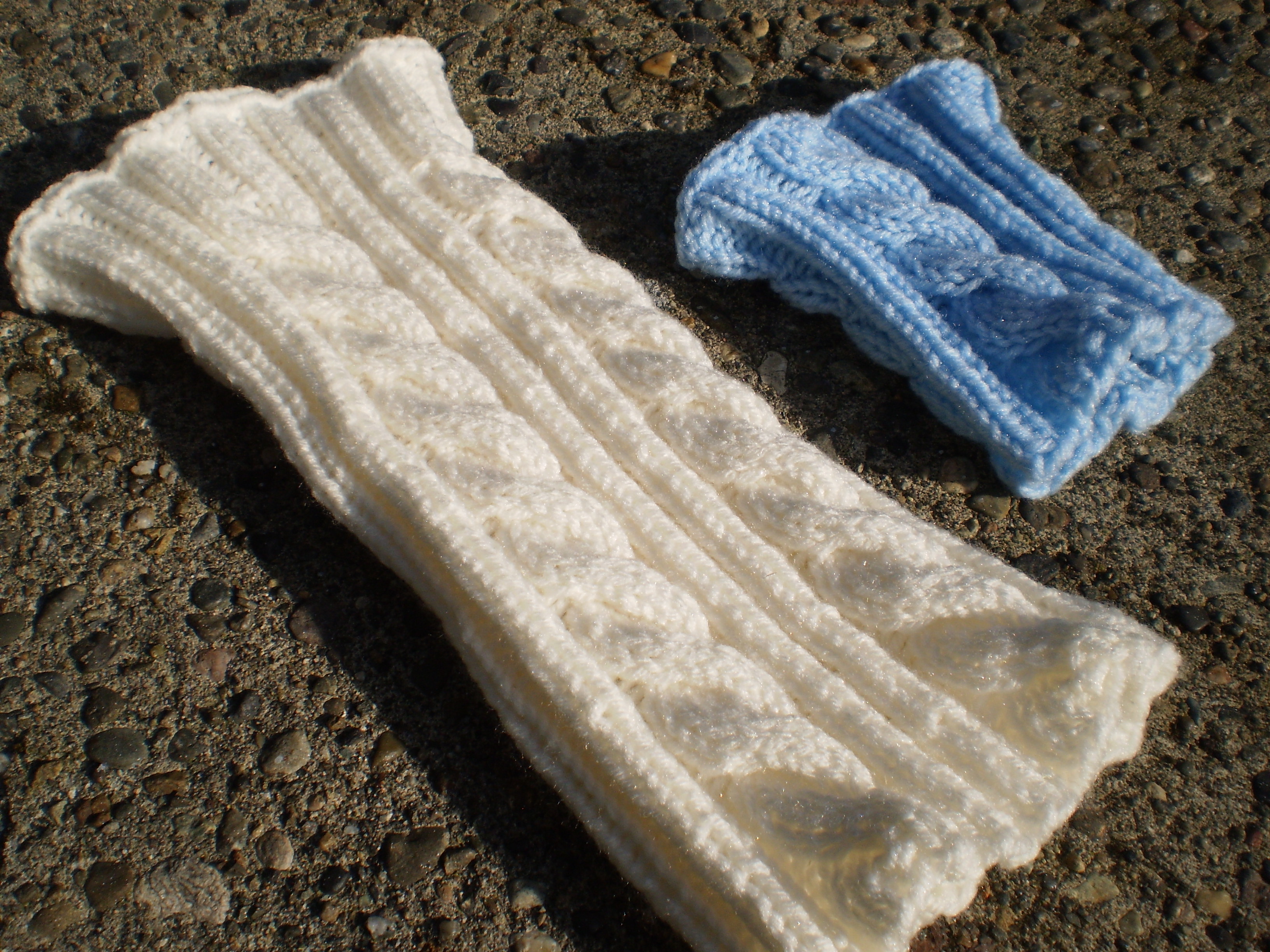 10. To finish, work 3 rows even (after your last cable row), then work 3 rows of k2p2 rib, and bind off loosely.  If you want, you can continue the k2p2 rib for a few inches, if you want a folded-over edge.