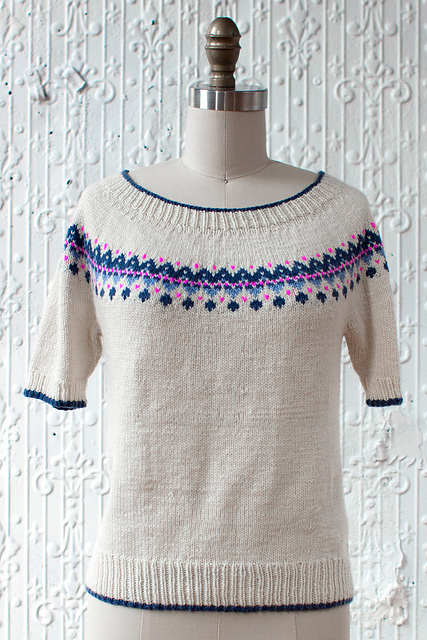 But, I’ve seen it about a thousand times, since they have been playing it over and over again on Hulu.  It might be a terrible commercial, it has a pretty great sweater in it.  It’s a fairly standard fair isle sweater in cream and grays, but it’s knit extra-long and a little bit fitted, which makes it much more modern than the fair isle sweaters you’ve probably seen in the back of your parent’s closets.