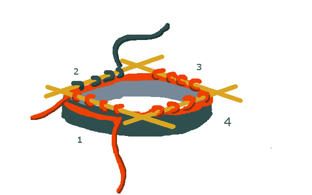 1. Cast on with your first color, and join in the round using a set of 5 dpns (4 to hold your knitting, and one to use). Knit a few rows (it can get too fiddly if you don’t have a good solid base before adding the second color).