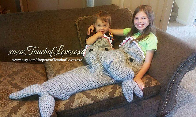 Fast and Easy Shark Tail Blanket by Sheila Hunt11781678_10153449629468632_5745988423847236629_n_medium2[1]They’re essentially the same as the mermaid tail blankets, but much more bad-ass.   (Just look at those sharp, sharp teeth!)