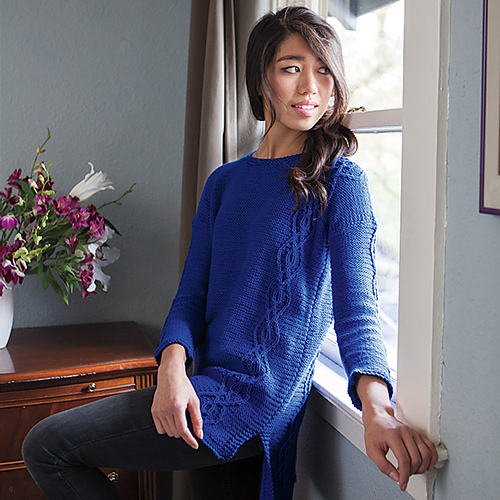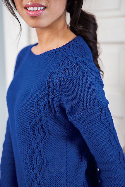I just love this sweater. It’s a modern take on the Aran jumper, oversized and cozy, but still undeniably Aran. And, there’s that cable again, running right up the front!