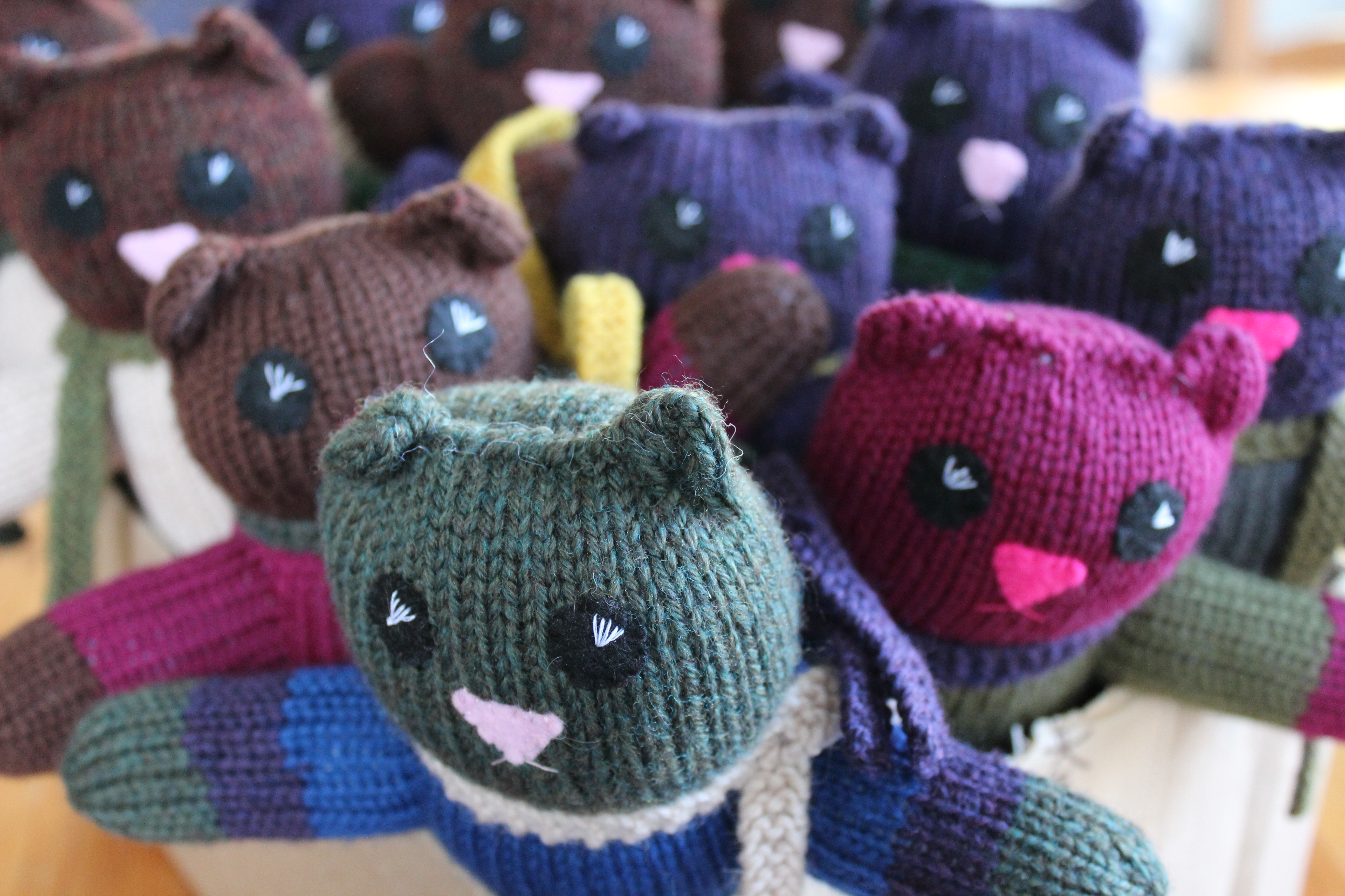 A dozen bears! They’ve been stuffed, assembled, sewn up and appliqued/embroidered (which always takes more time than I expect). I’m pleased with how they turned out, and more than pleased with the fact that they’re finally done! They’ve been sitting staring at me, unfinished, for months. (OK, they weren’t staring, because I hadn’t gotten it together enough to give them eyes until this weekend, but you understand.)