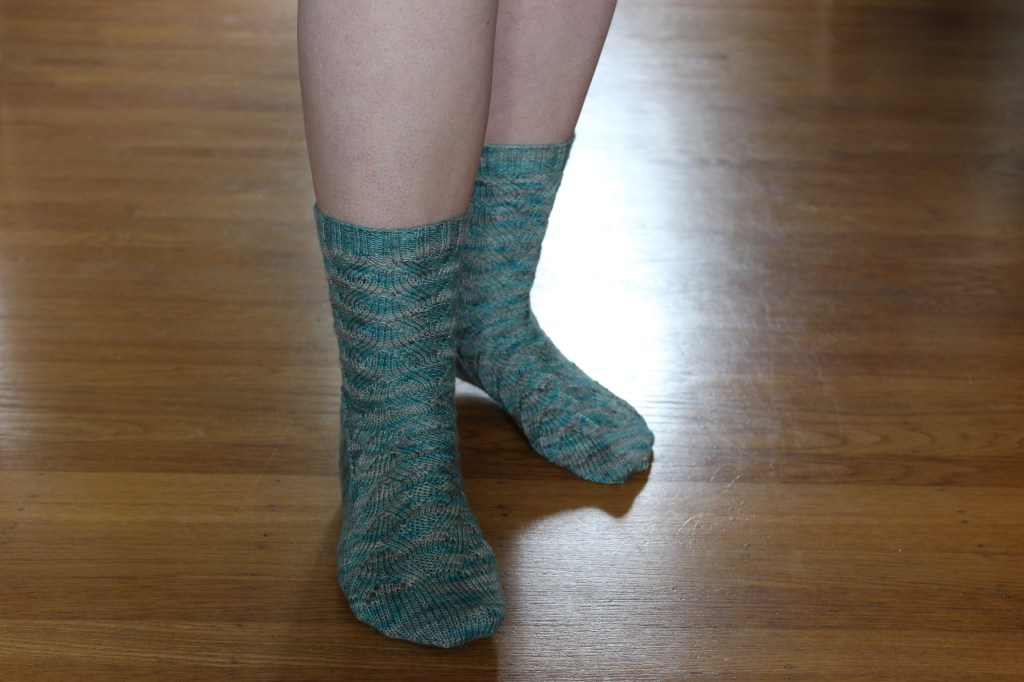 I’m continuing on my streak of “Finishing off projects that should have been done weeks ago if I’d only not been a doofus” with my newest pair of socks.
