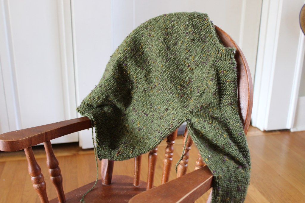 I’ve been working on it for essentially one day, and I’ve made it almost to the armpit split. And I don’t have a ton of knitting time these days (obviously).