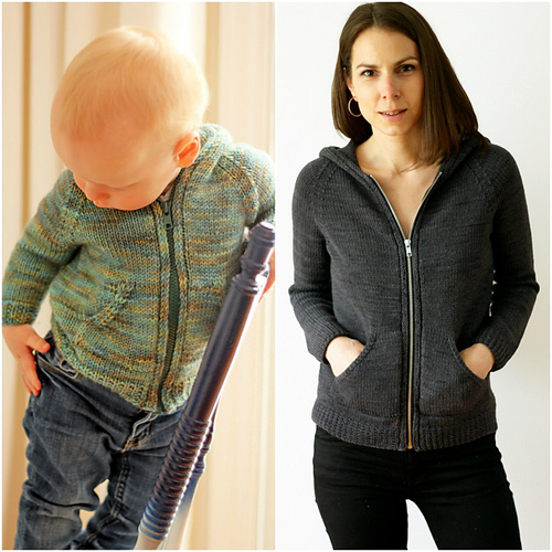 The R&R Hoodie by Tanis Lavallee would be perfect, with almost no changes! And it comes in a range of sizes. It’s at a pretty small gauge, though, so that might not be quite as cozy as Daniel’s sweater.