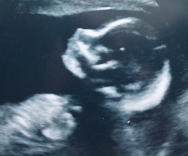 There he is!  He doesn’t have a name yet, and isn’t due to be born until the beginning of April, but he’s very much making his presence known (I’m afraid of stretching out all my sweaters, so I’m down to cardigans only), and has currently wedged himself uncomfortably up in my rib cage.