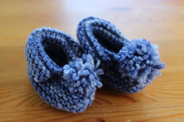 These rainbow booties are too cute!  I mean, look at that adorable drawstring!And these teensy blue slippers!  Mom thinks they won’t stay on the baby’s feet, but by God, I’m going to try to keep them on.  I mean- look at those pompoms!These white and blue gradient socks are so lovely, I wish I had a matching pair.And these boots are just gorgeous (though I think the baby will have to grow up a little bit before he can fit into them).  I love the contrasting garter stitch soles- how cozy!My mom’s definitely got some mad sock-making skills, if I say so myself.  And my baby’s definitely  a lucky little dude.