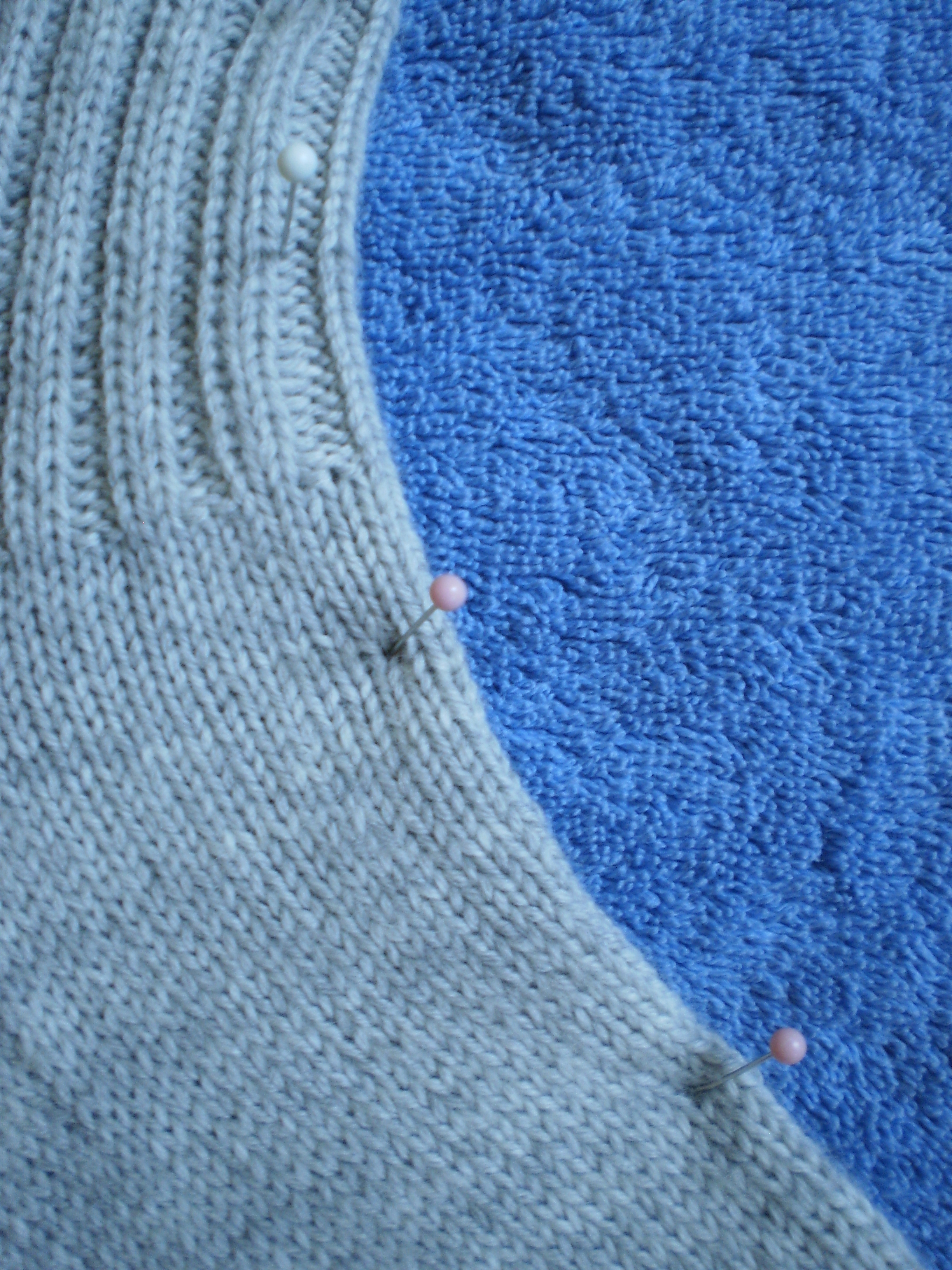I even blocked it! That’s how done it is! I soaked it in the sink and spread it out in the basement (where the children and dog can’t get to it) on a clean drop cloth. (I know… such a fancy setup.) And, lucky for me, it’s been super dry here, so it blocked in just a couple days.