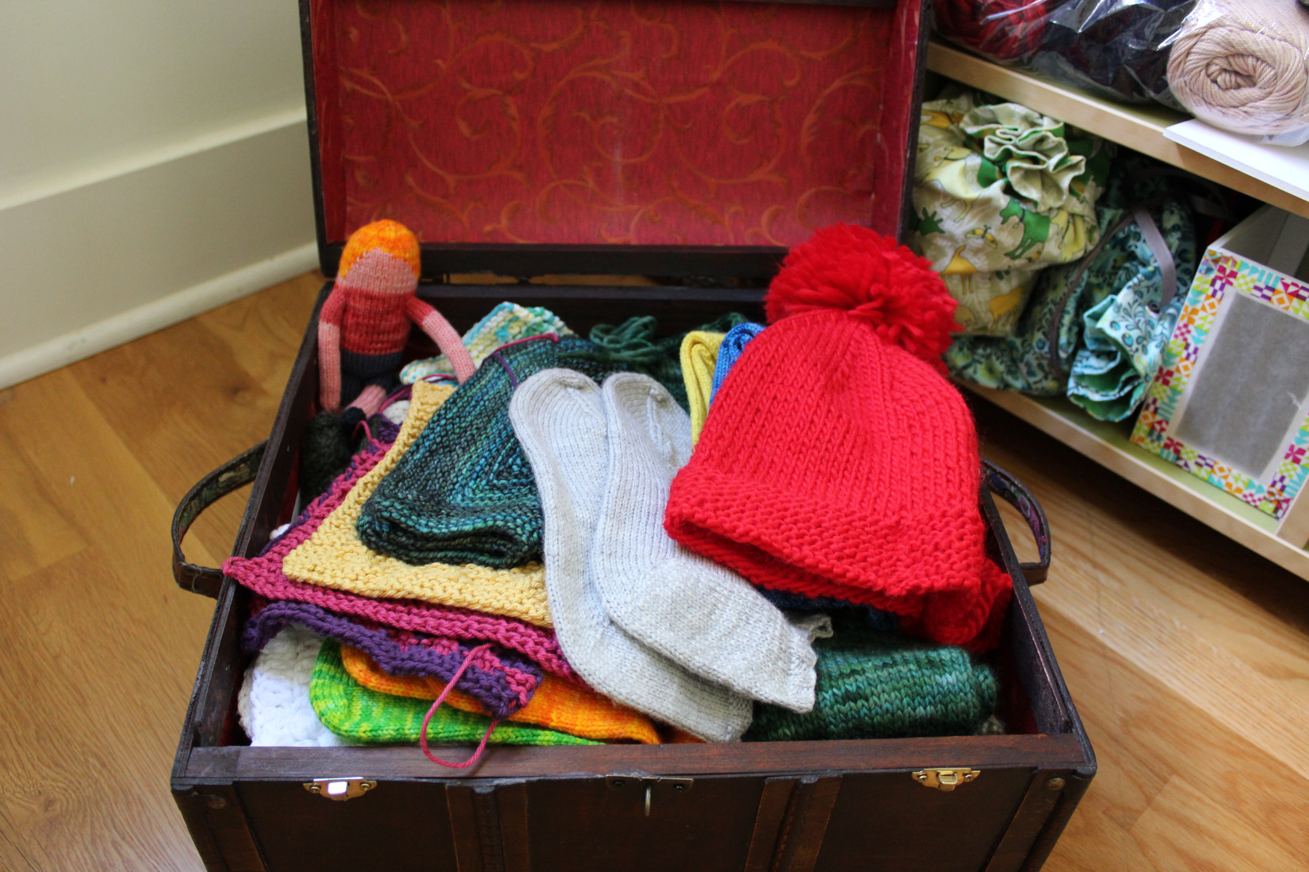 I don’t usually think about what I’ve got stashed in my secret chest, but it is satisfying to open it up from time to time to see the result of all my hard work. And, it’s particularly handy when I get invited to a baby shower/birthday party/whatever at the last minute- I can pull out a pair of socks I knit in 2012 and look like I did a heck of a lot more planning than I really did.