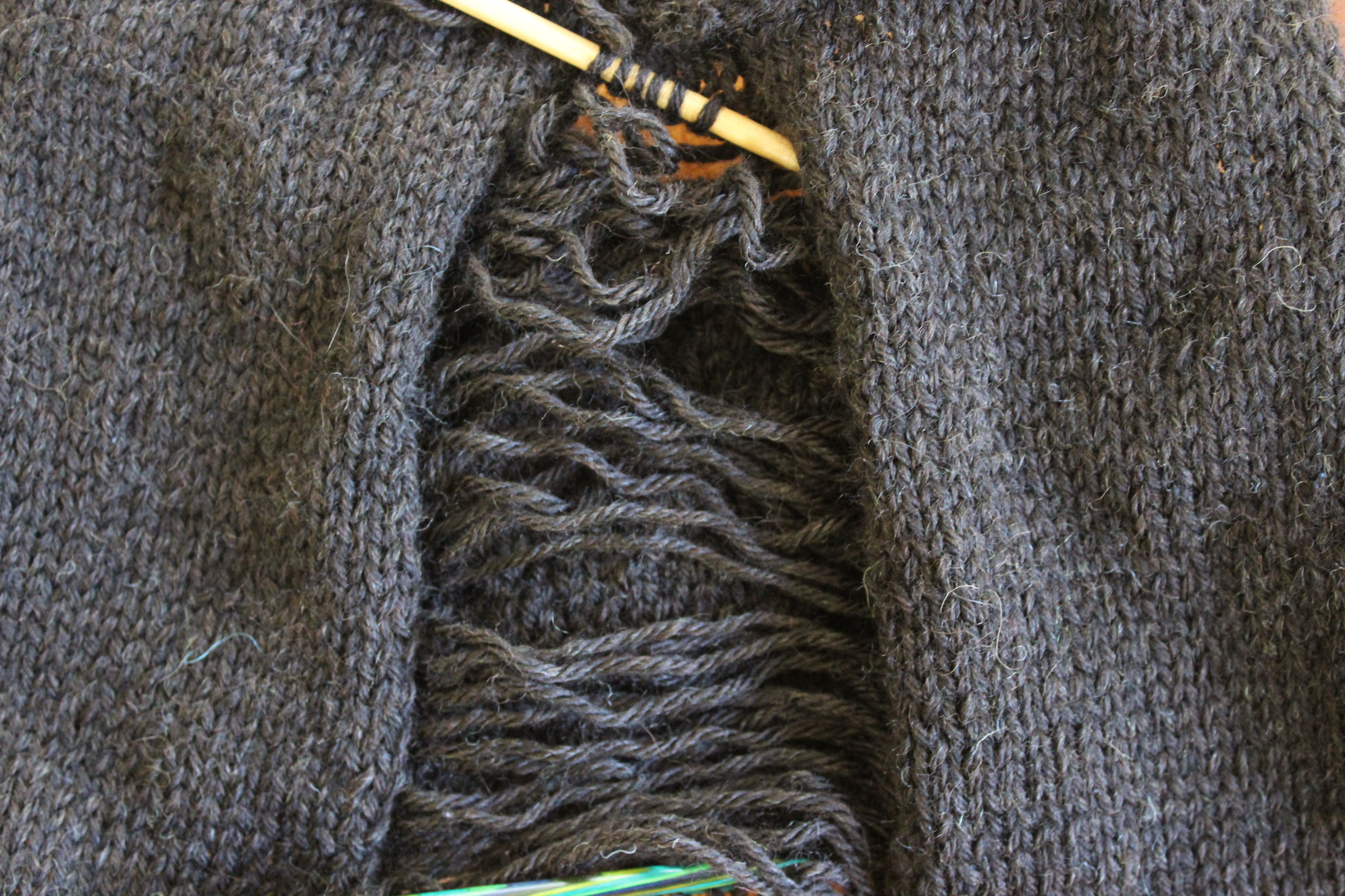 Get ready for some awkward-as-friends pictures! (I was home alone, and had about 5 minutes to try taking pictures between pouring rain and hail!) I need some lessons on taking nice pictures of myself wearing sweaters- everyone else on Ravelry seems to get it, but I always end up making myself look like a big goober. Of course, I am a big goober, so maybe that’s the problem.