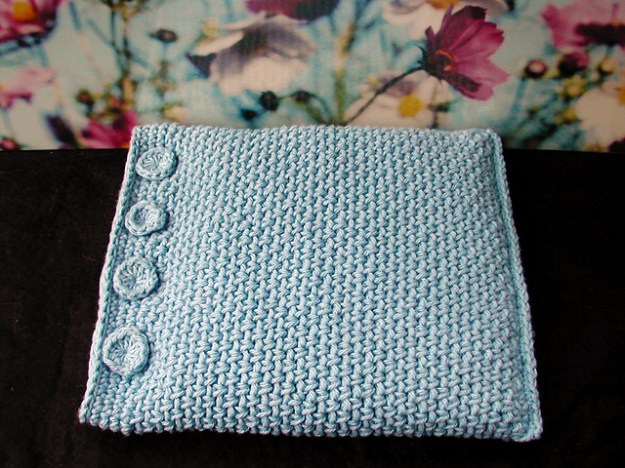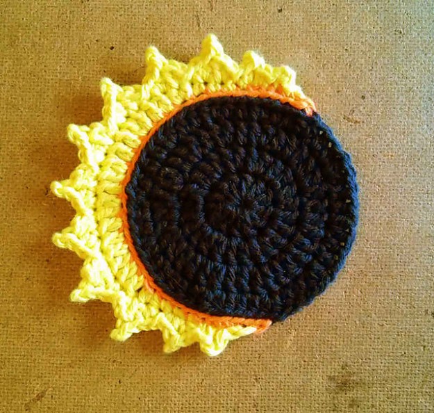 Then I crocheted around the yoyos, adding a round of white to turn the yoyos into squares. Each square is maybe an inch-and-a-half across… they’re very small.