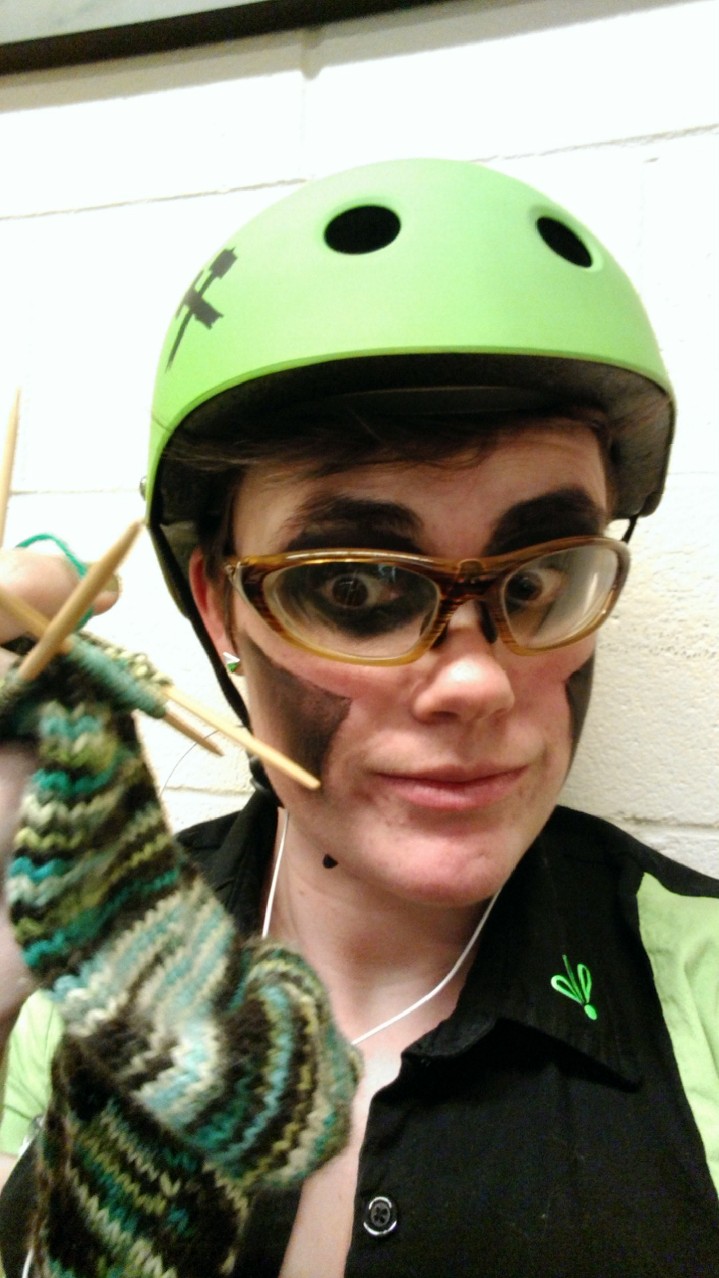When I’m not being an obsessive TV-watching, tea-drinking knitter I like to let out my aggression by playing roller derby. It’s super fun. I play with a local banked track league (Tilted Thunder), and it’s probably one of the most satisfying things that I’ve ever done. (And definitely the most fun I’ve ever had playing a sport, although that’s not saying much.)