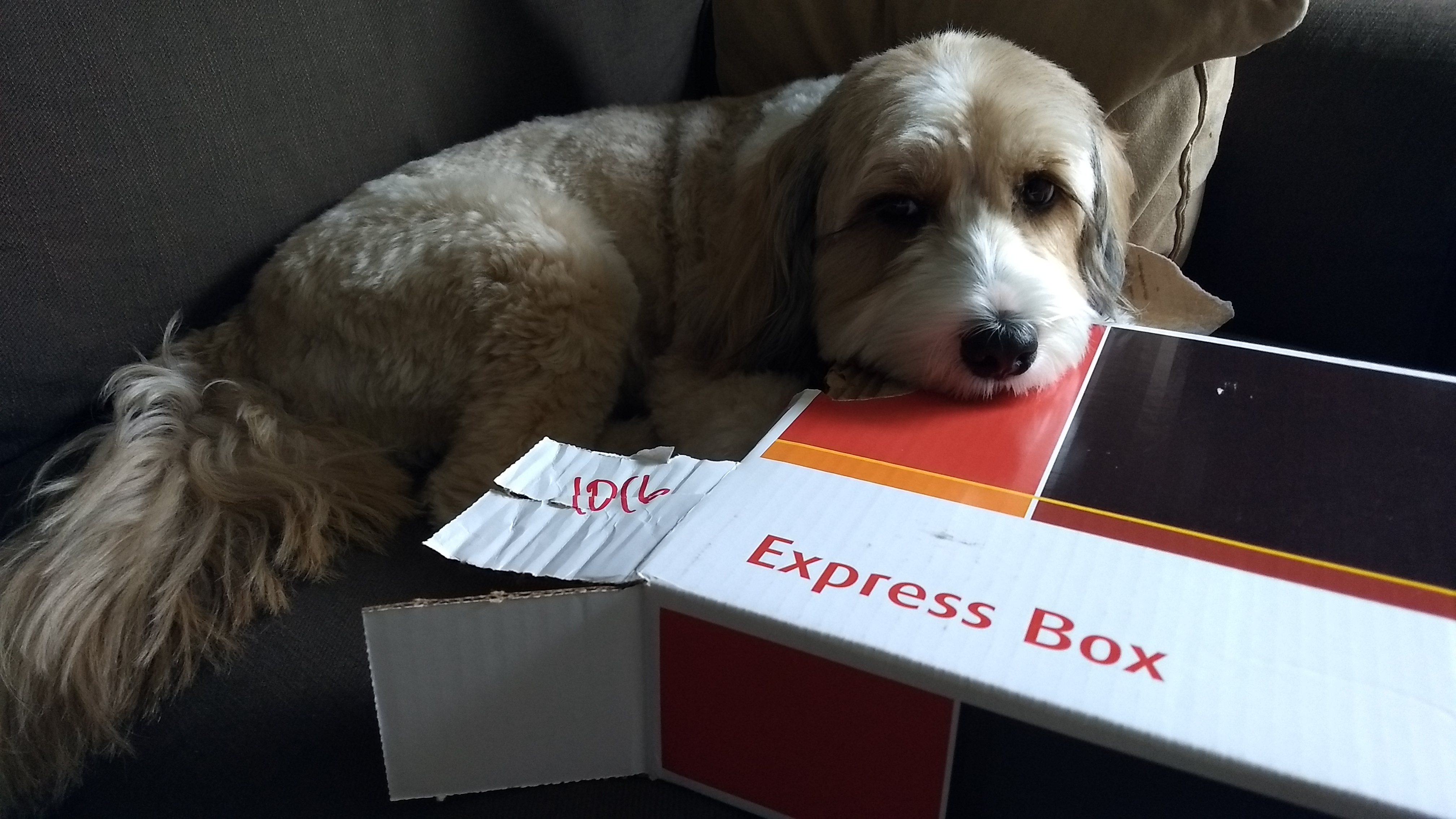 But he consoled himself by burrowing further into the couch and tangling himself in a blanket. Because that’s what Tibetan Terriers do- they’re champion couch hanger-outers.