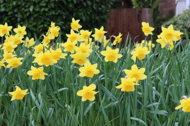The daffodils are blooming, and I’m so excited! We planted a big bag of bulbs in the fall, and I wasn’t sure if they’d come up this year, so I was just thrilled when they started peeking through the dirt about a month ago. They’re really going to town now, our yard if full of the cheerful little guys. (Full disclosure, the photo is our neighbors’ yard, because they have even more daffodils than us, and it makes for a much more impressive picture. #goals) I’ve filled our house with cut flowers (which is delightful, but is probably what’s making me sneeze all over the place).