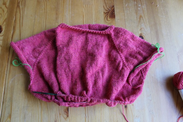 So, now that I’ve “finished” the tricky bits, I’m off to go knit my sleeves and body… fingers crossed that I have enough yarn!