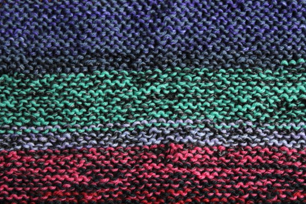 So, this time, I’m doing a bunch of my finishing before I’m… well… finished. I’m still short of the halfway mark, but I’ve already done the finishing on the fiddly bits at the shoulders and collar. I’ve woven in all my ends from casting on/picking up at the shoulders, and I’ve knit on the collar and button bands and woven those ends in as well. I’ll probably go for a dive into the button jar some time this week and get those added on, as well.
