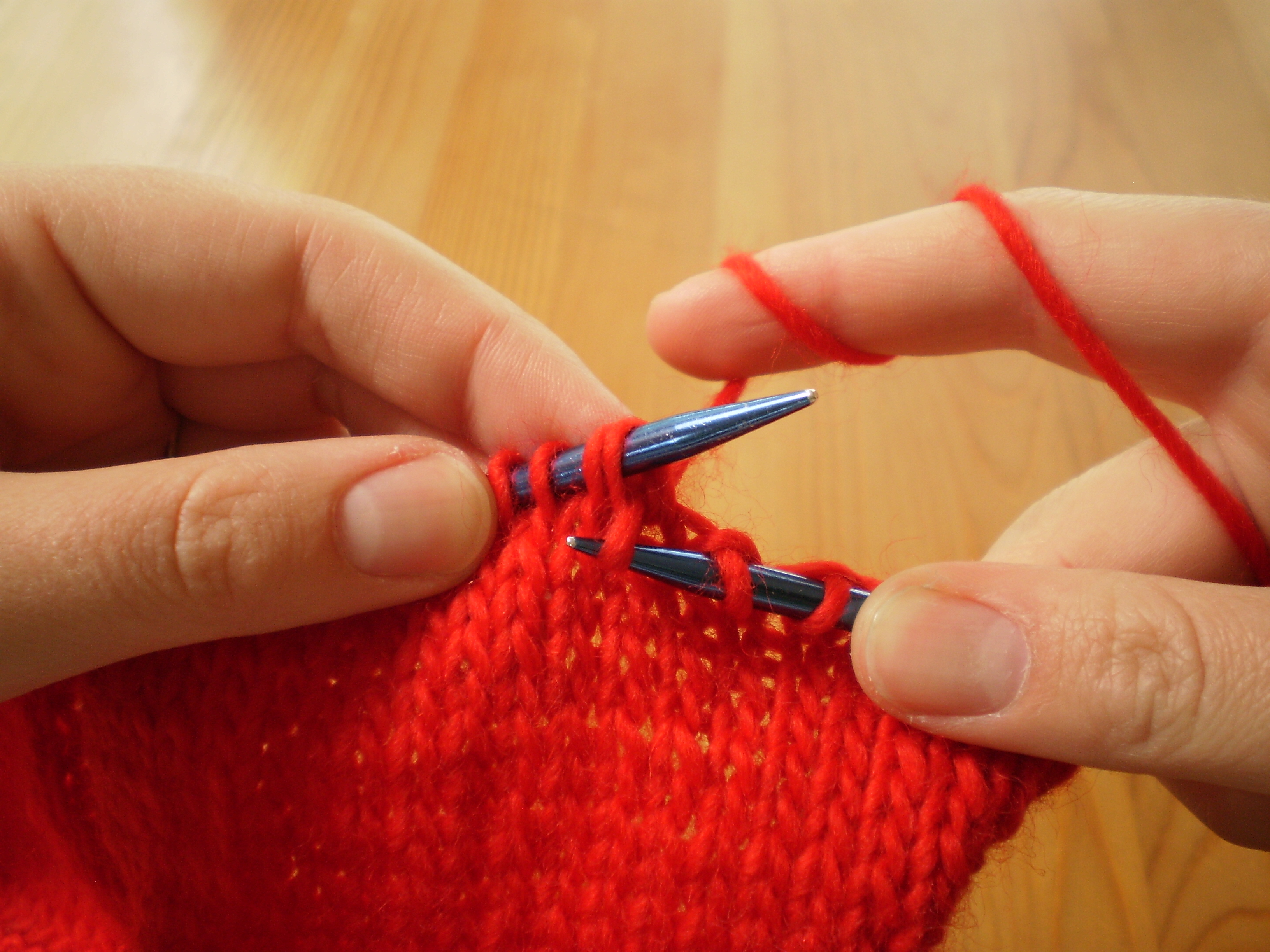 OLYMPUS DIGITAL CAMERAk2togs are super easy to do.  It’s exactly like doing a knit, but instead of poking your right needle through a single stitch, you poke it through two stitches.  Like this: