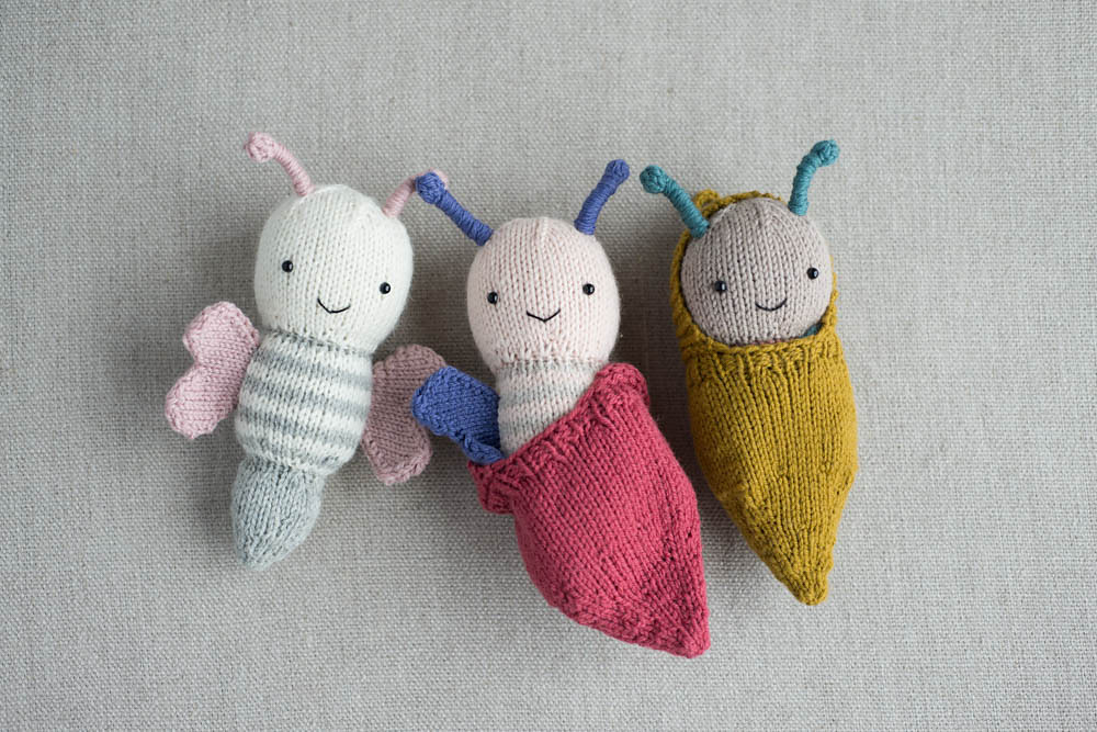 So, I’ve been experimenting, and need your input. Last week, I “finished” the little butterfly stuffies that are Christmas gifts for my kids. “Finished” is in quotes because they still don’t have faces. Just unsettling stitch markers where the eyes should be.