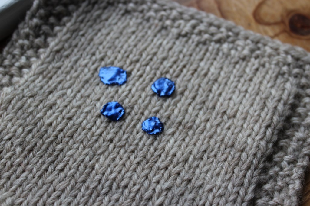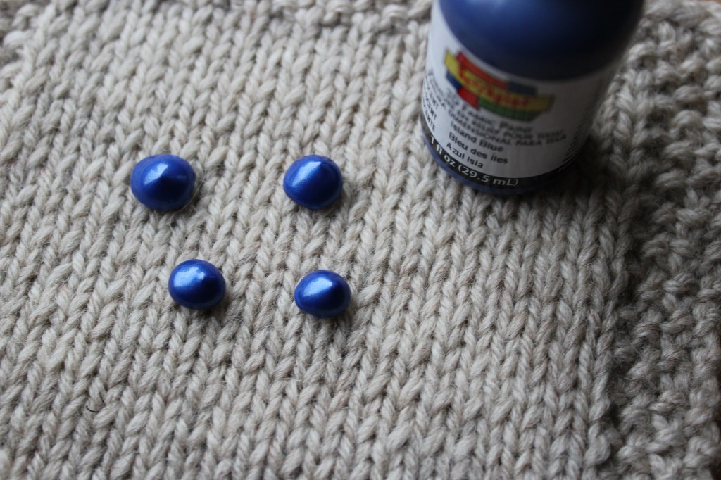 Pffffft… Well, that didn’t dry as nicely as I wanted it to. It’s lumpy and flat, not nicely beaded up, like it was when it was still wet. On the plus side, at least it was really sturdily on there. No kid (even a heavy chewer) is going to get that paint off.